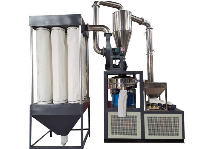 The plastic pulverizer machine is mainly composed of electric motor, disc type blade, feeding fan, vibrating sieve, dust removing system, etc.